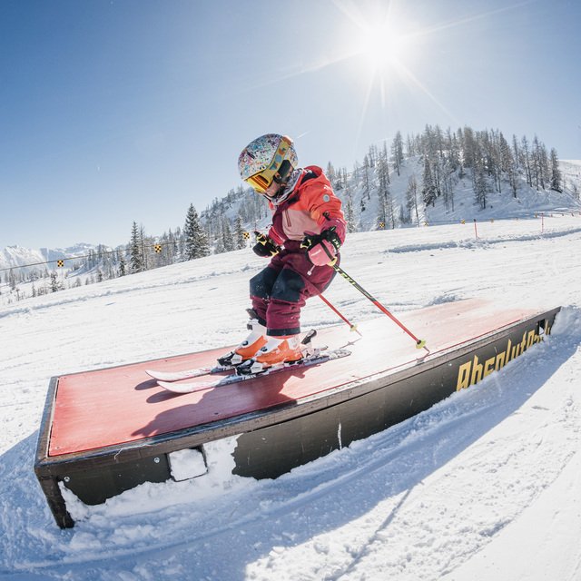 In the lower section of Absolut Park, right in front of the Chill House, you'll find the ultimate playground for jibbers: the Jib Park. Packed with a variety of easy-to-ride rails and boxes, this compact space guarantees tons of fun. Whether you're a beginner or a pro, every shredder will find their perfect run here and can work on their jib skills.
